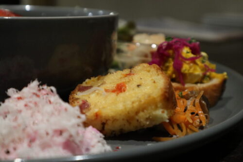 8種類の副菜は日によって変わるそうですが、米粉サクレのケーキや、マリネ、柴漬けを練り込んだポテサラなど、