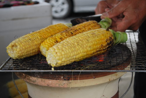 香ばしい醤油の匂いがたまらない焼きとうもろこしもあります