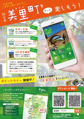 アプリのダウンロードは、Google PlayまたはApp Storeで「美里町観光アプリ」若しくは「みさとりっぷ」で検索されてください。