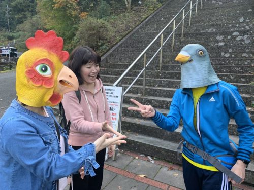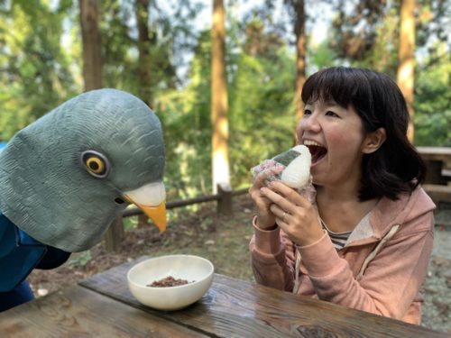 そんなこともあろうかと。ハトの友達、鳥のかぶりものをどうぞ!さ!!