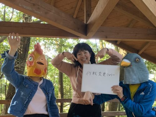 そもそも、かぶり物で階段登ったら危ないよという本末転倒な意見や、距離が離れすぎてて声も姿も見えてないのでジャンケンすら実行出来ないという根本的な問題が出てまいりました。