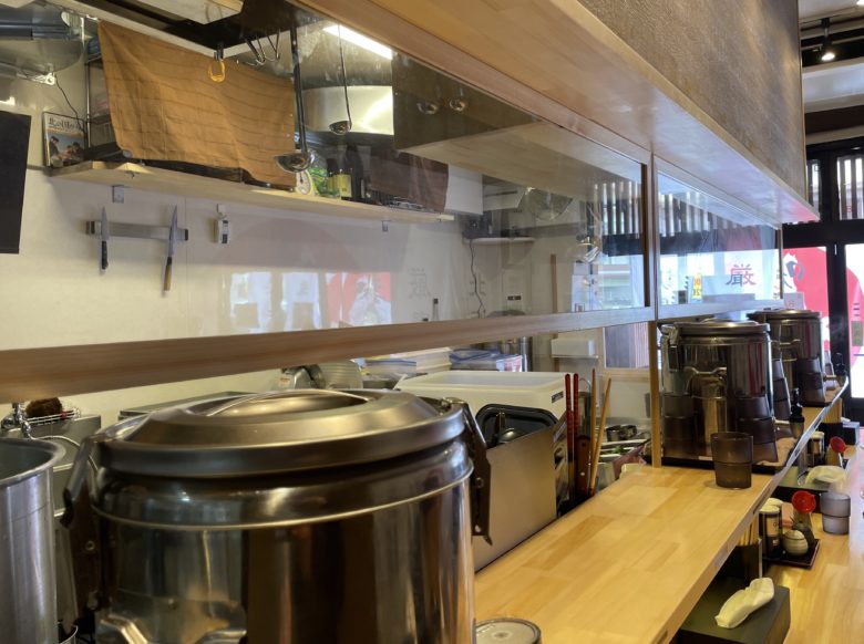 一蘭を彷彿とさせる、目の前にお冷のピッチャーが備え付けられていました。