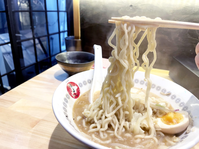 一般的な味噌ラーメンに使用されている麺とは少し違いますが、プリプリしたモチモチ食感の麺でさらに食欲を掻き立てられました!