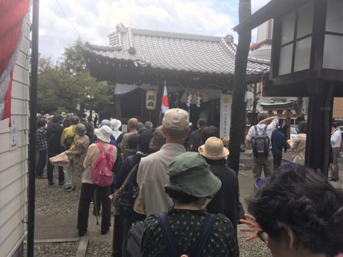 25日の例大祭は11時からとのことで、余裕をもって30分前に行ったところ、早くもこの行列!