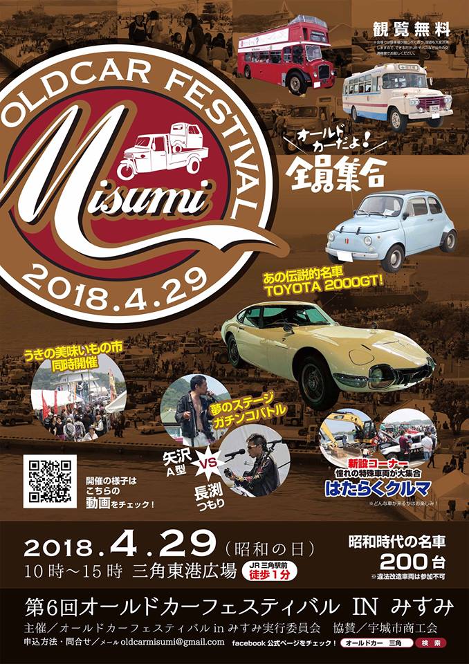 4月29日(日・祝)昭和の日に三角東港広場で、オールドカー200台が集まる「第6回オールドカーフェスティバルINみすみ」が開催されます!