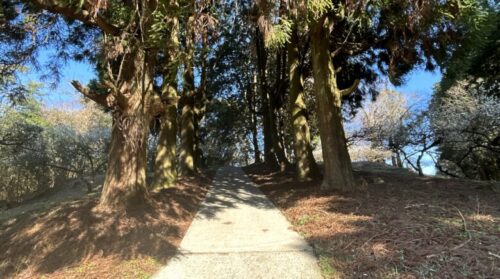 この大きな木々に囲まれた道は映画のようで素敵ですよ。