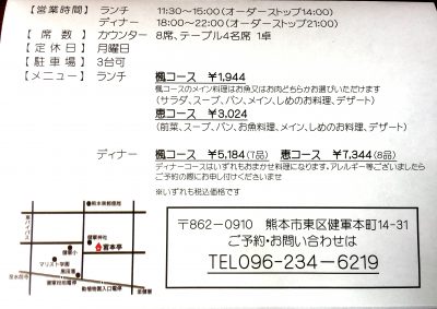 健軍神社近くにある、コース料理のみのフレンチレストラン「ちいさなレストラン 宮本亭」