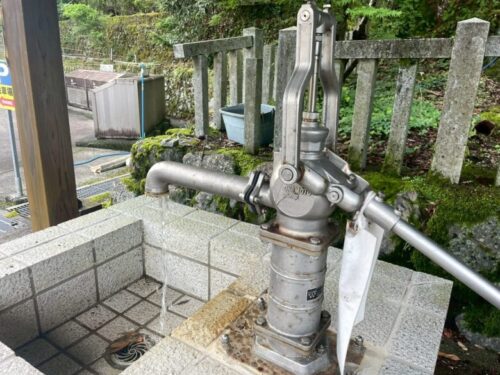 イチョウの木の横には、昔ながらの水汲みポンプもあります。
