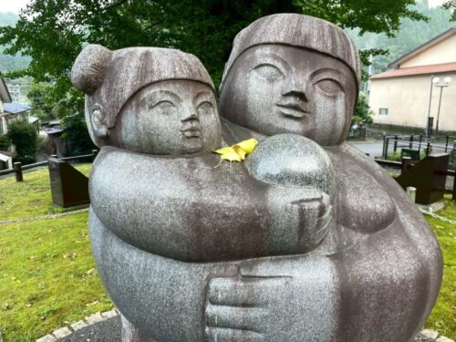 母が子を抱く像に、黄色く染まったイチョウの葉があり、なんとも平和な気持ちになりました。
