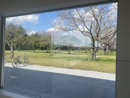 そうそう、駅の窓から見えるこちらは、春になると桜が満開になります。そんな季節の移り変わりを観れるのも、楽しみです。