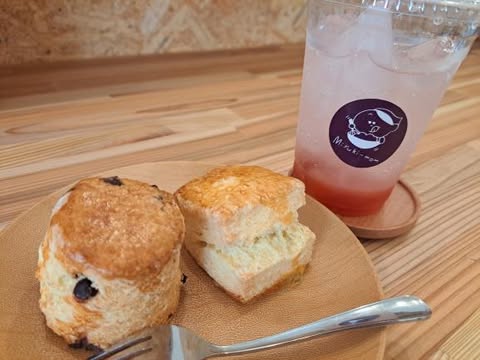 こちらのスペースで人気のチョコチップスコーンと、お勧めの天草塩のスコーン、フルーツジュースをいただきました。