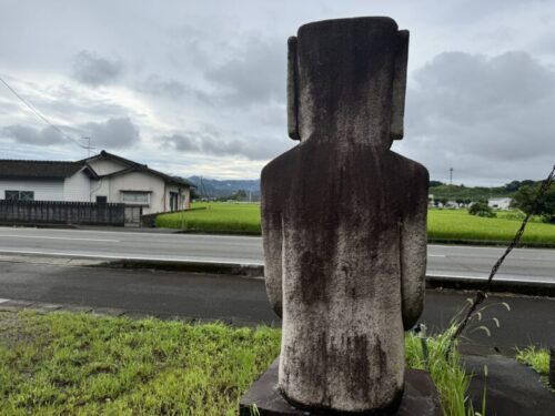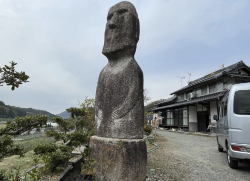 田原坂の民家入口にモアイ像