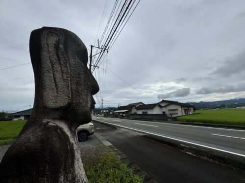 国道3号線沿い南高江にいるモアイ像