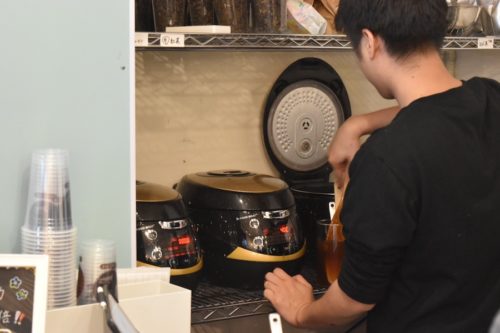 タピオカは冷凍ではなく、生タピオカを使い、黒糖or三温糖でじっくり煮詰め、なんと2時間も炊飯器で炊き上げているとか! フル回転じゃないと追いつかないほど人気のようで、店員さんは汗だくでした。