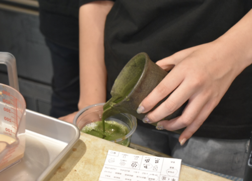 注文を受けてから、店員さんが1杯ずつ丁寧に注いでいきます。お抹茶の色が濃い!!