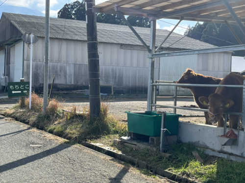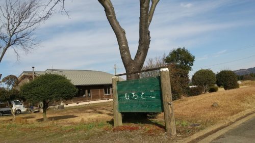 右側に牛舎が見えたところに、再び「もちとこ」の緑の看板があります。