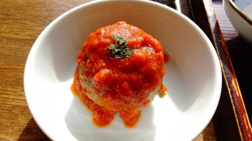 トマトの酸味と甘みが口の中いっぱいに広がり、ふわっとやさしい味わい。お肉の食感もしっかりとしていて、一口一口かむほどに旨味を感じます。