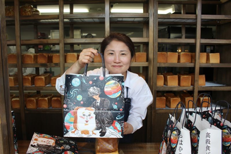 購入した食パンは外壁と同じイラストの紙袋に入れてもらえます。お土産でこの袋を渡すとインパクト凄そうです。