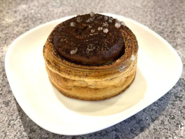 掛かっている粉末は苦みを想像していましたが、意外にもほんのり感じるくらい。一緒にザラメも乗っているので、ザクザクした食感もあります。ふわふわのパンとの食感のコントラストが楽しい!食べた後は口の中が珈琲の風味でいっぱいに!