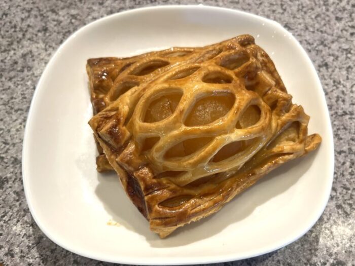 パイ生地はサクサクと軽く、中のリンゴはシャクシャクとした歯応えが残っていてフレッシュ。さらに、甘さも控えめなのであっさりしています。あと引く美味しさで、こんなに大きいのにペロリと食べられちゃいます。