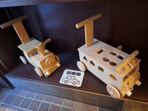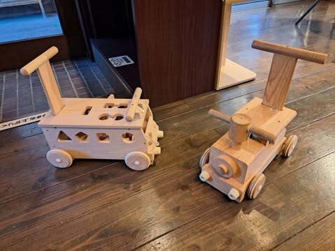 木の車や電車は大人も乗ることができるほど耐久性があるらしいです。