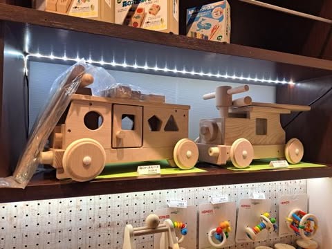 ここのお店には全国各地から集められた木のおもちゃがあるんです。