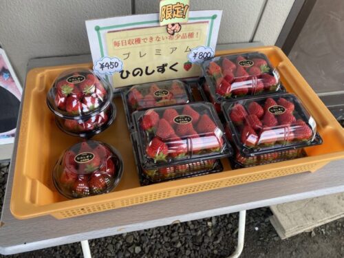 プレミアム品種のひのしずくも450円と800円の2サイズで販売していました。