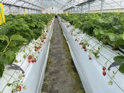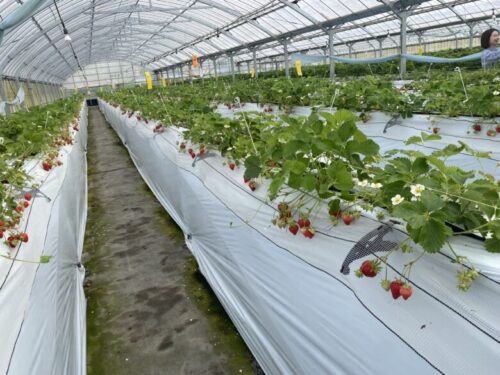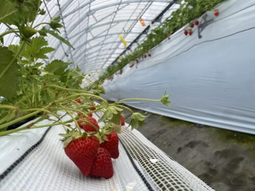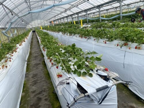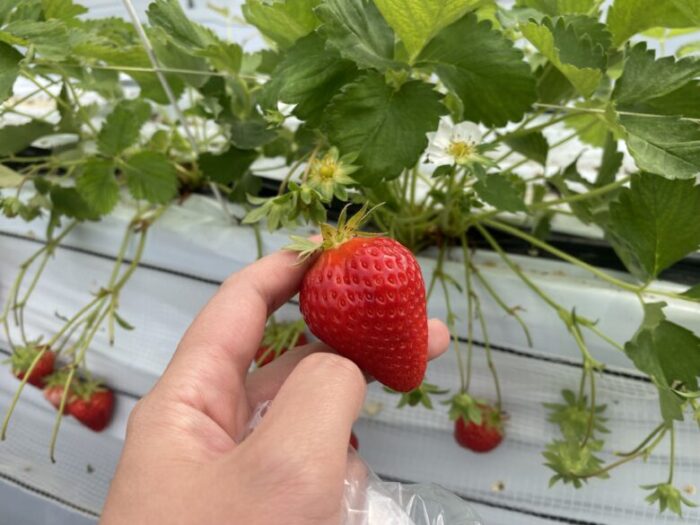 こちらのハウスでは「高設栽培」という立って摘める栽培方法のため、しゃがむのが辛い高齢の方や小さいお子さんにもお勧めです。