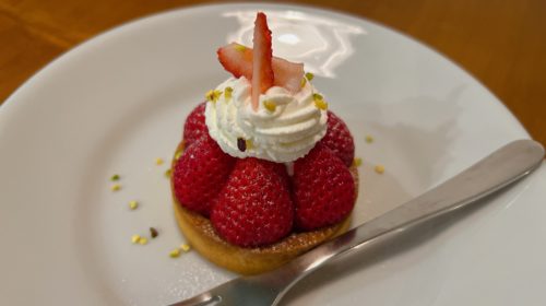 中央にいちごのソースのようなものが入っていて、甘すぎずタルトもザクザクでした。