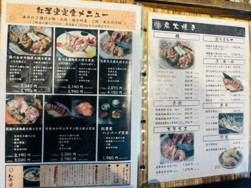 こちらが定食メニュー!その他、炭火焼きやヤマメの塩焼き、お刺身などの単品料理も多数。お酒などのドリンクも充実しています。
