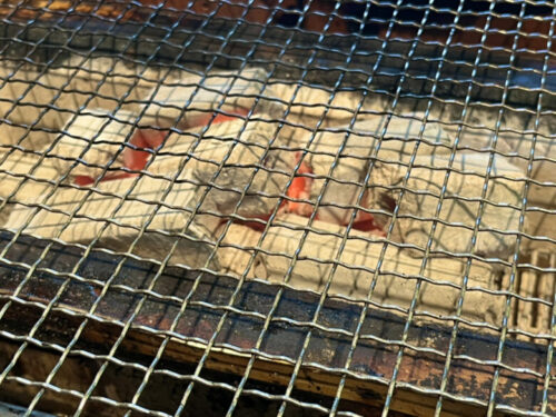 囲炉裏の炭火で焼いていく楽しみって