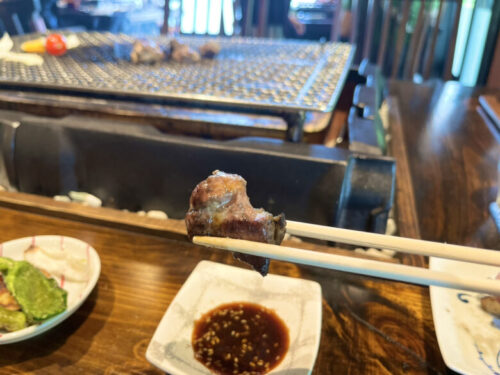 こちらが、メニューの中で最も歯ごたえが強いという「おや鶏」のたれ焼きです。