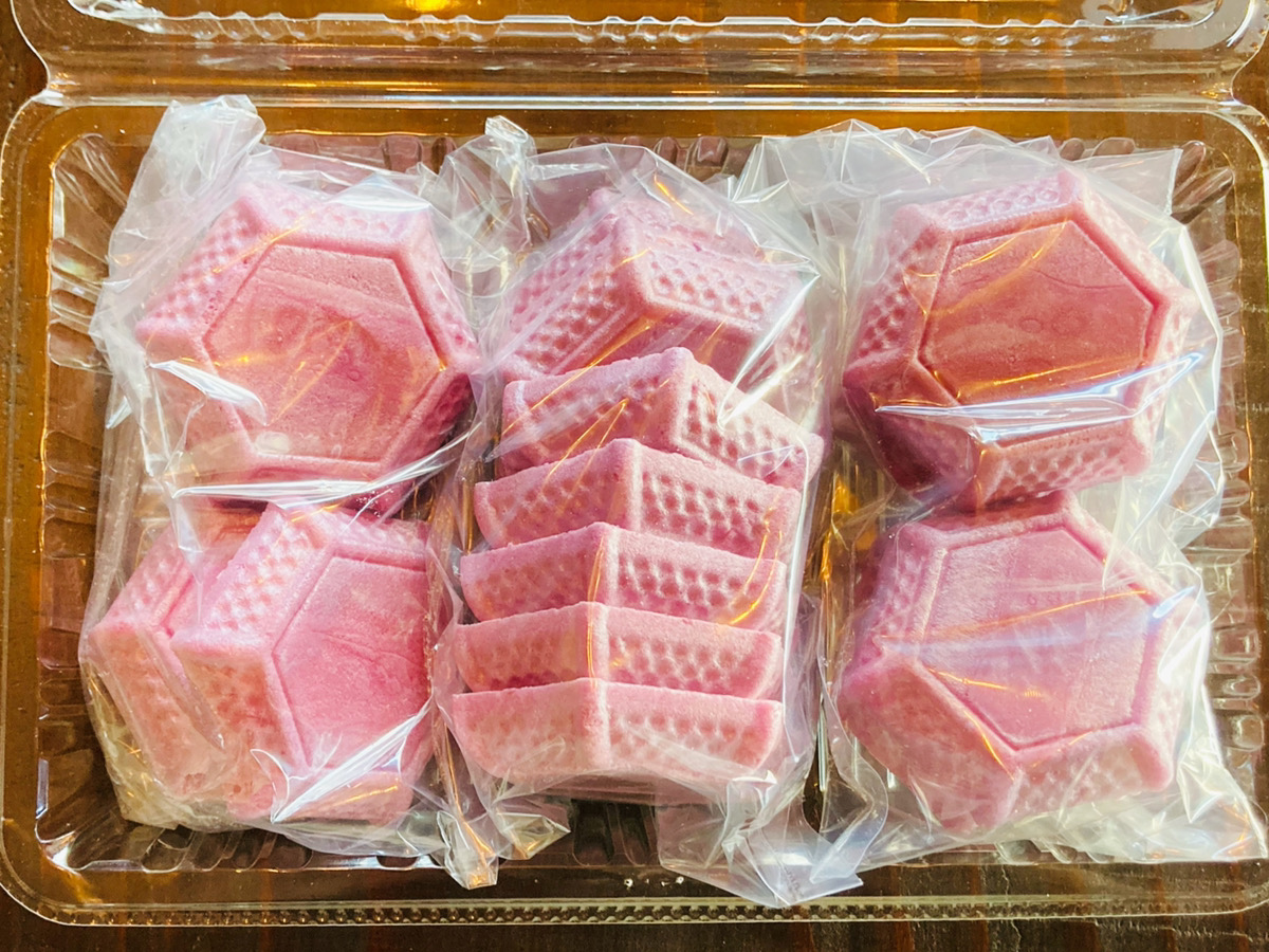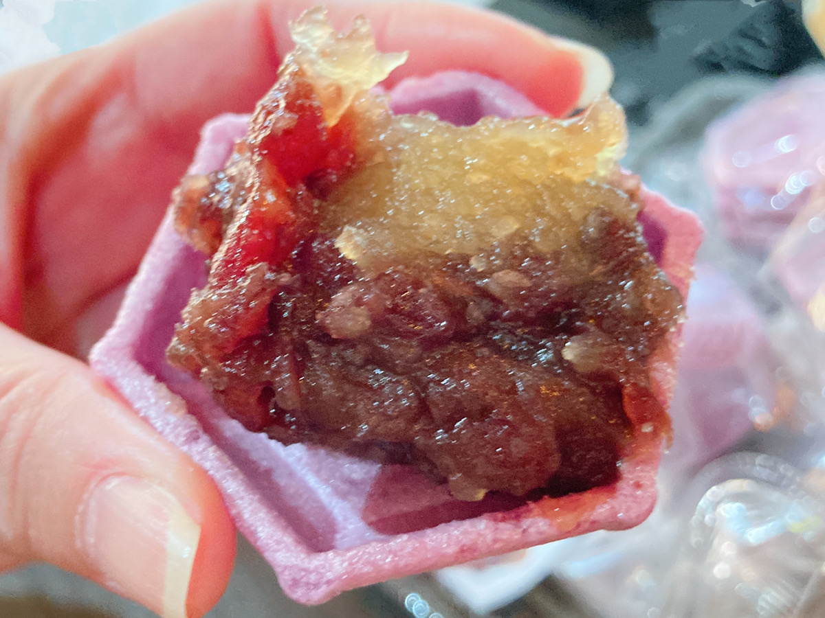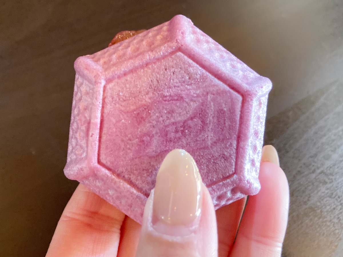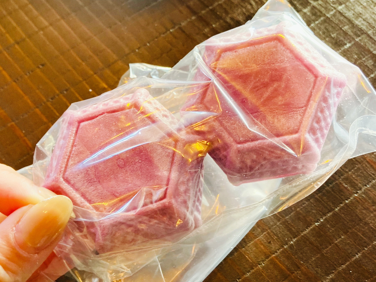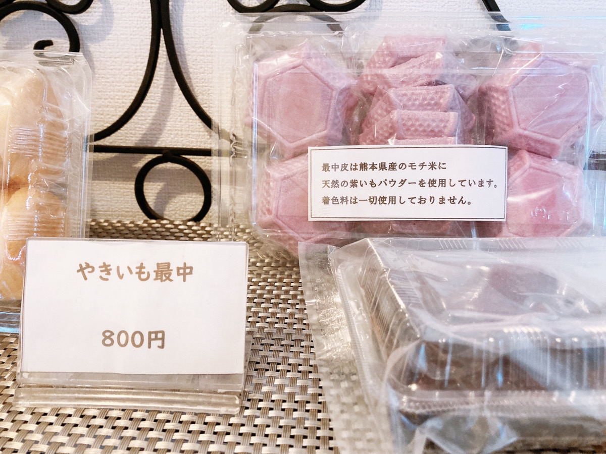 やきいも最中の皮はキレイな紫色。これ、おいもから出た色だそうです。びっくり!