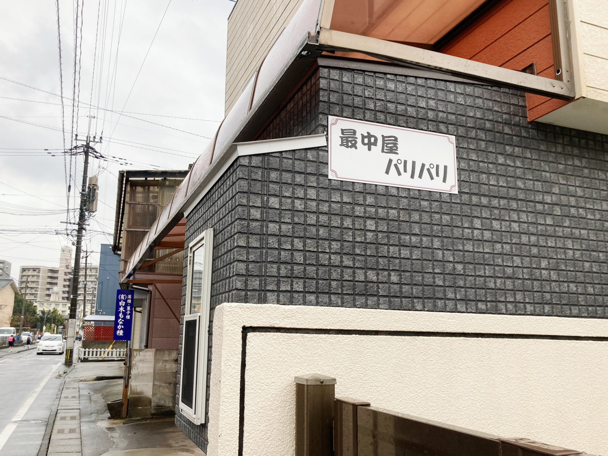 萩原町のすぐ近く。お店に近づくと最中屋パリパリの看板が。