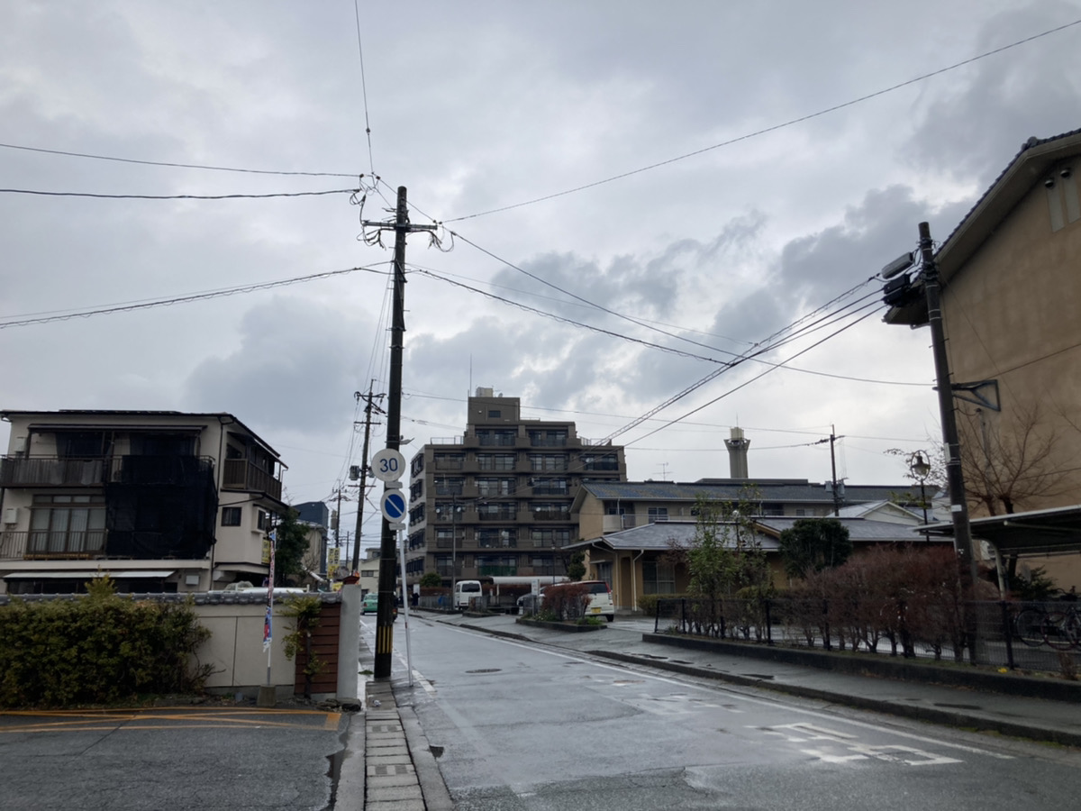 お店へ行くには白山大通りから進むとわかりやすい場所にあります。琴平神社から少し南熊本方面へ進むと、玉泉院の手前を右に入った通りです。