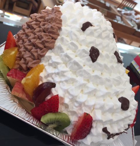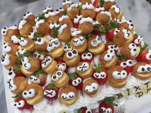 お客さんの希望を叶えた、シュークリームが大量に乗ったケーキ。
