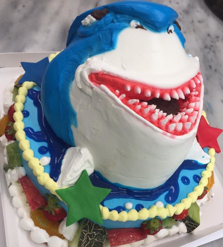 こちらの鮫のケーキも大迫力!歯がリアル過ぎてこっちが食べれれてしまいそう。