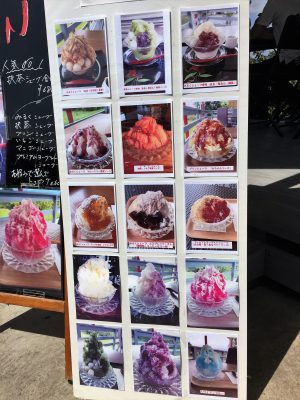 汗をかきかき、やっと行列の先頭までたどりつきました。メニュー表でもう決めたはずなのに、写真見てまた心が揺れ動く。