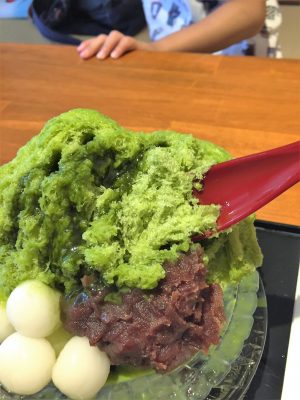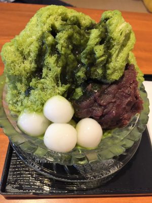抹茶シェーブ金時(白玉+粒あん+抹茶ソースかけ)680円