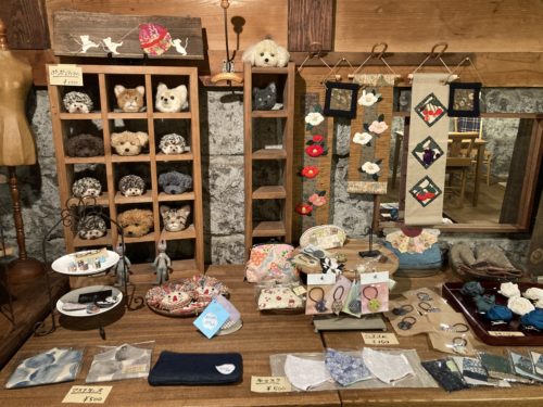 地元の方、手作りの可愛いすぎる雑貨が並べられています。中でも、ポンポンアニマルが人気なんだとか。可愛いすぎて見とれてしまいます。