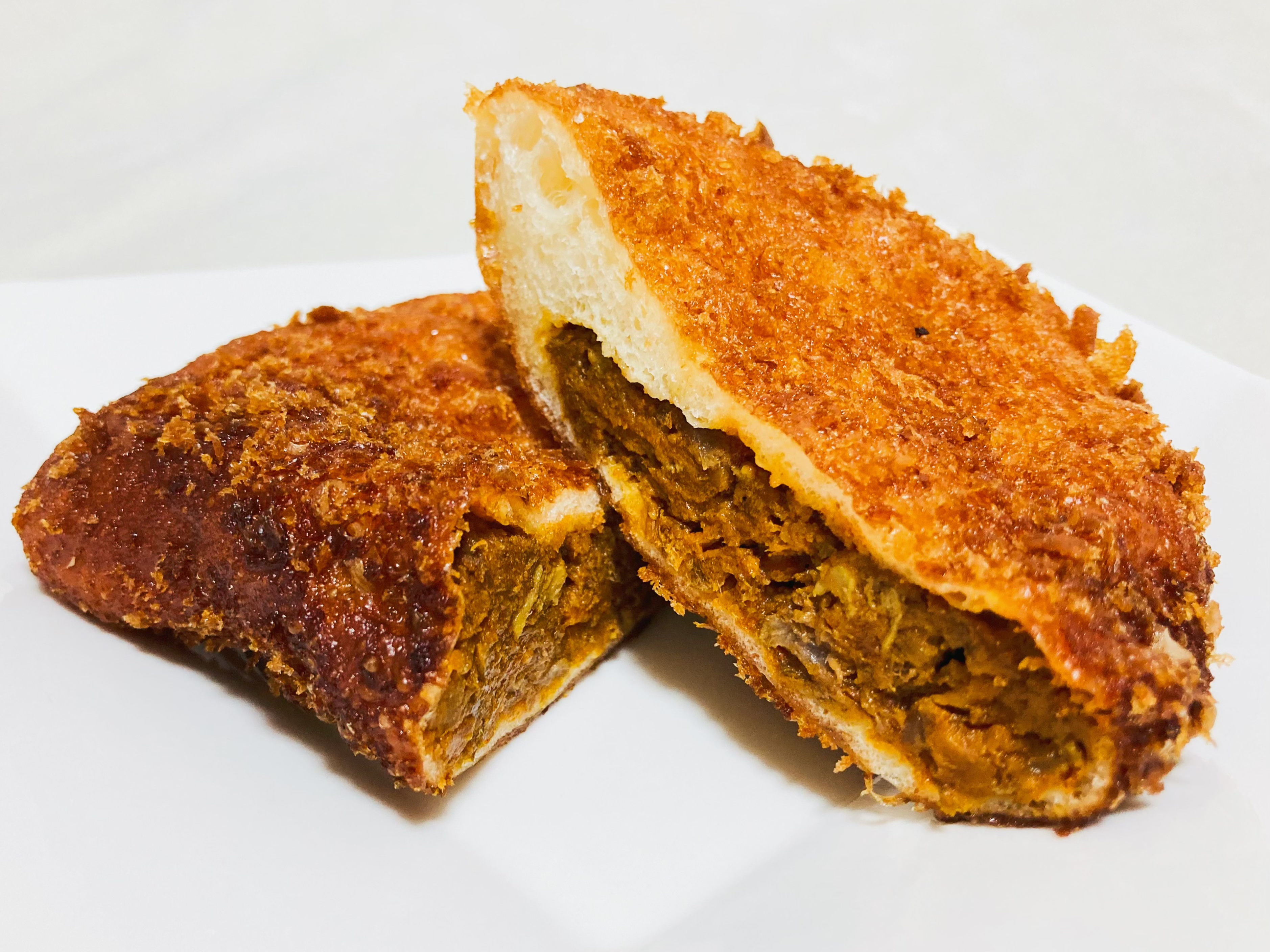 外側のパンはもっちりとしていて感動。さらに、中のカレーはコクがあってこちらも絶品。たっぷりの牛肉も柔らかくて、旨味がぎゅっと詰まっています。カレーは辛さもあるので大人も満足できる本格派です。