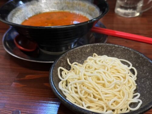 一見して辛そうです。しかし!これがまた豚骨担々麺の妙といいますか、口に入れた時はピリッとするのですが、豚骨スープのクリーミーさがまろやかに調整してくれます。