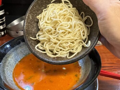 替え玉入れて、チャチャっと混ぜれば、味濃い旨辛スープが、しっかり麺に絡んでくれます。