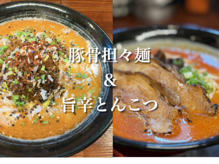 通常メニューから、旨辛とんこつを注文。期間限定メニューから、豚骨担々麺を注文。