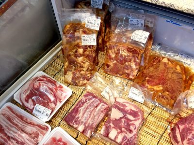 こじんまりとした店内ですが、きれいな色の豚肉がずらりと並んでいます。