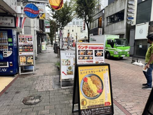 ランチタイムになると、お店の看板がズラズラ並び出します。