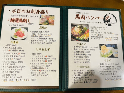 ランチライムでも居酒屋メニューが楽しめて、計10種類の特製ソースから選べる旨みたっぷりの絶品「馬肉ハンバーグ」を堪能できる店を見つけました!ご紹介しますね。