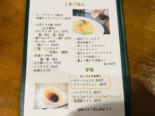しめごはんメニューも最高!!!おっさんの手作り甘味も大人気。