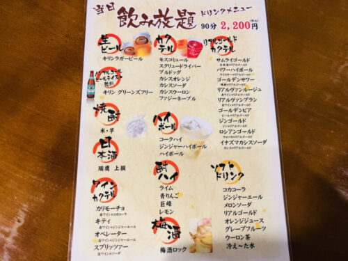 当日飲み放題制度あり。