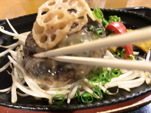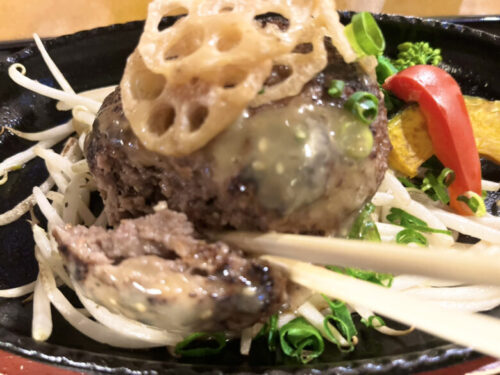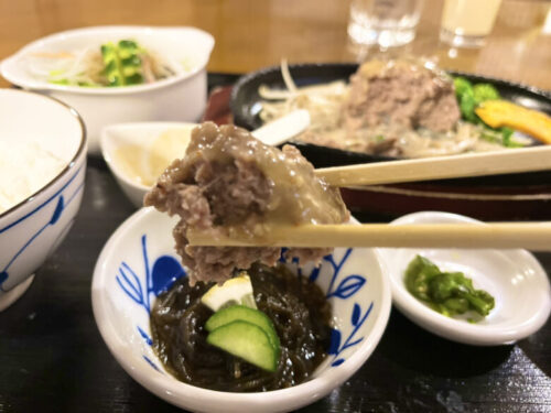 口に入れると、ふんわりと柔らかくって馬肉の旨みがたっぷり!ピリリとしたアクセントのある馬肉バーグで、噛むほどにお肉の甘みまでも楽しめます。